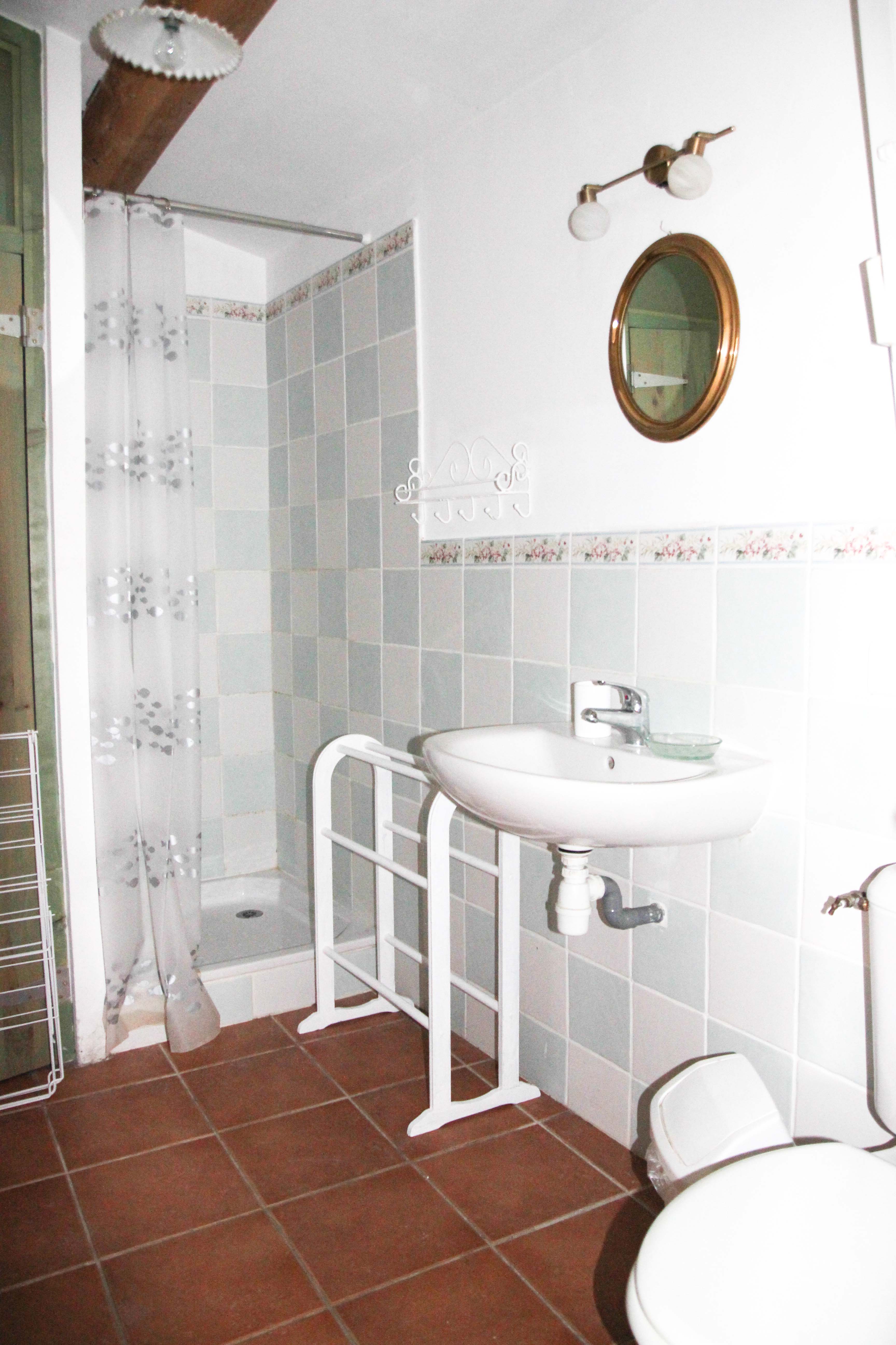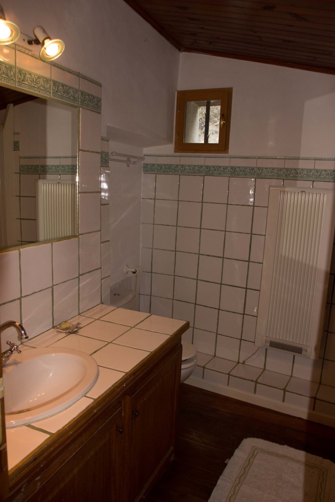 Badezimmer OG: Badewanne mit Duschvorhang, Waschtisch, Föhn, WC, Handtuchheizkörper