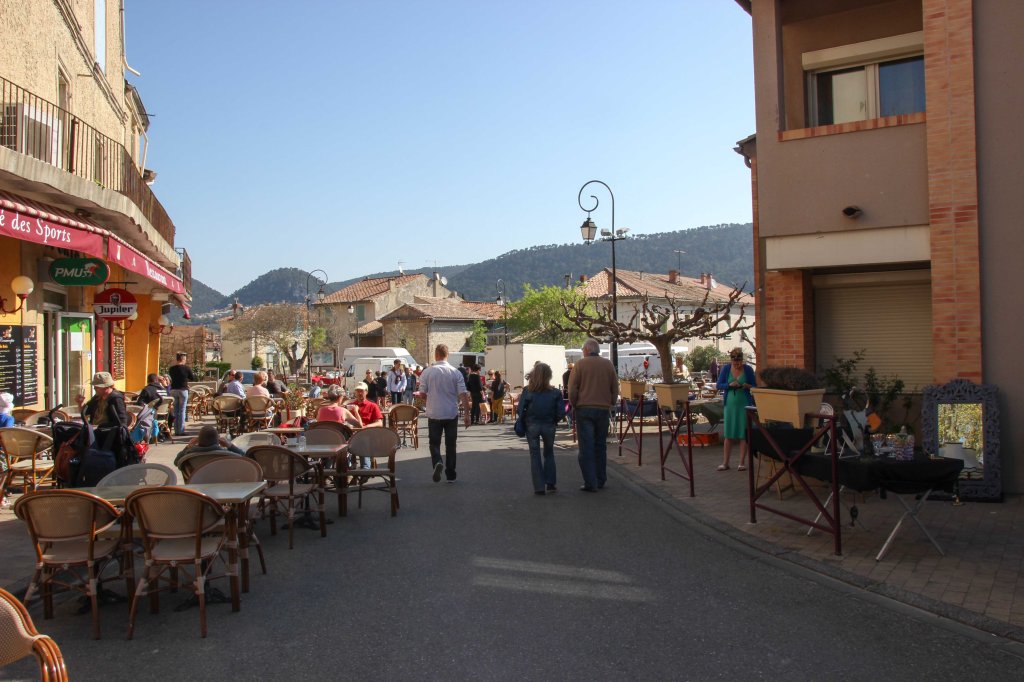 Das Bistro und der kleine Markt in Sablet sind gut besucht, Trödelmärkte bringen Leben in den Ort.
